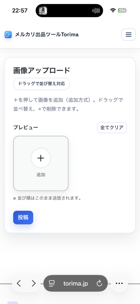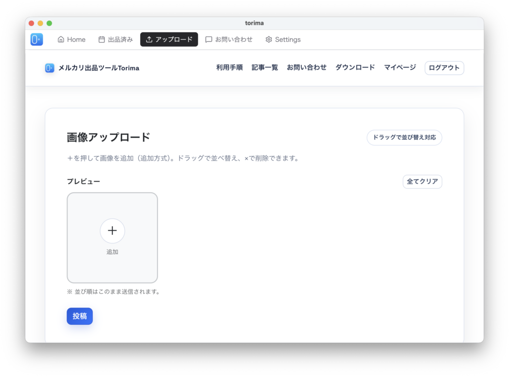 画像のアップロードはスマホ(おすすめ)またはPC(Torimaアプリ上)から行うことができます。