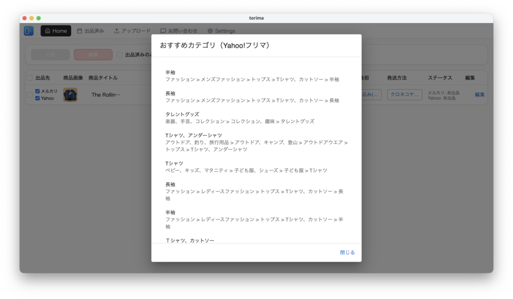無事、商品がメルカリ、Yahooフリマに同時出品できていることが確認できました。