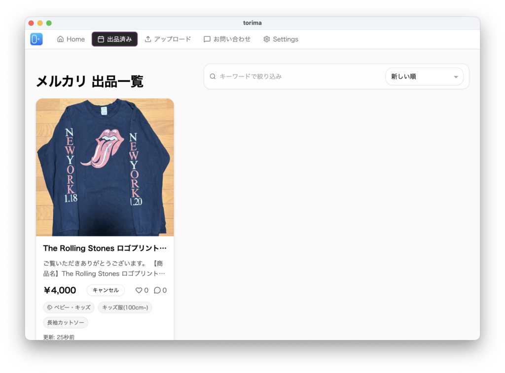 - 再出品をかんたんに——Home画面で「出品済みのみ」にチェックし、商品を選んで「出品」を押すだけです。再出品の手順を見る →